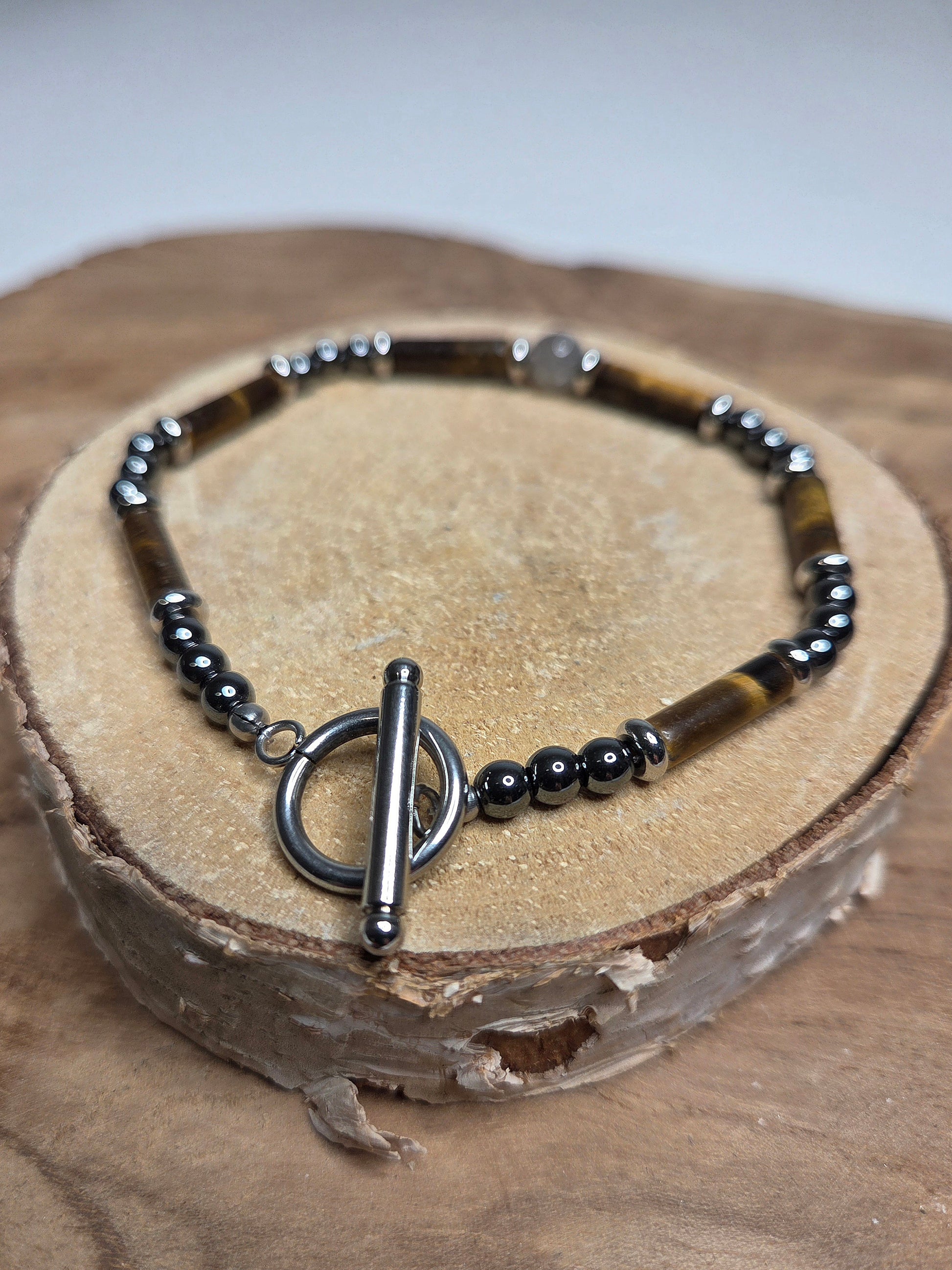 NOUVEAU - Bracelet "Protection" - Hematite, œil de tigre et labradorite