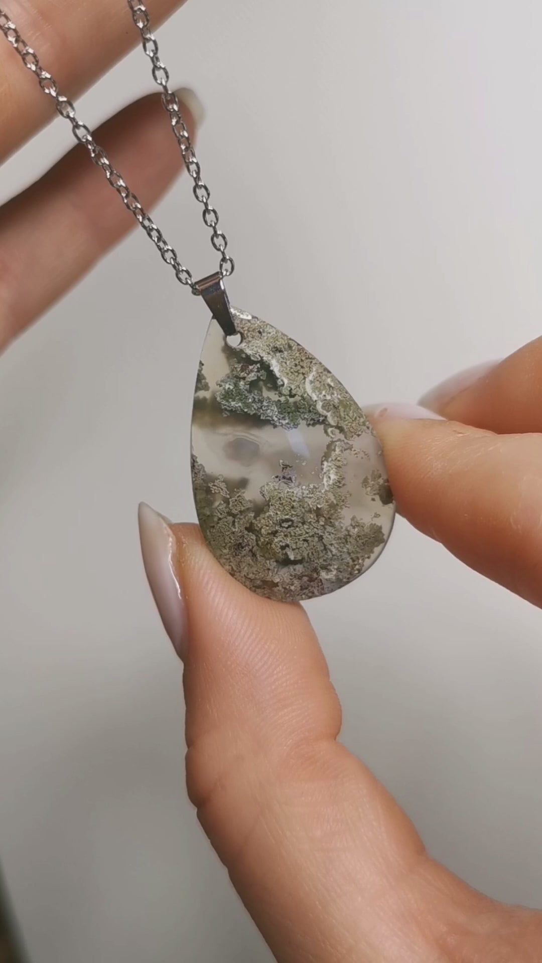 Pendentif goutte en agate mousse indonésienne