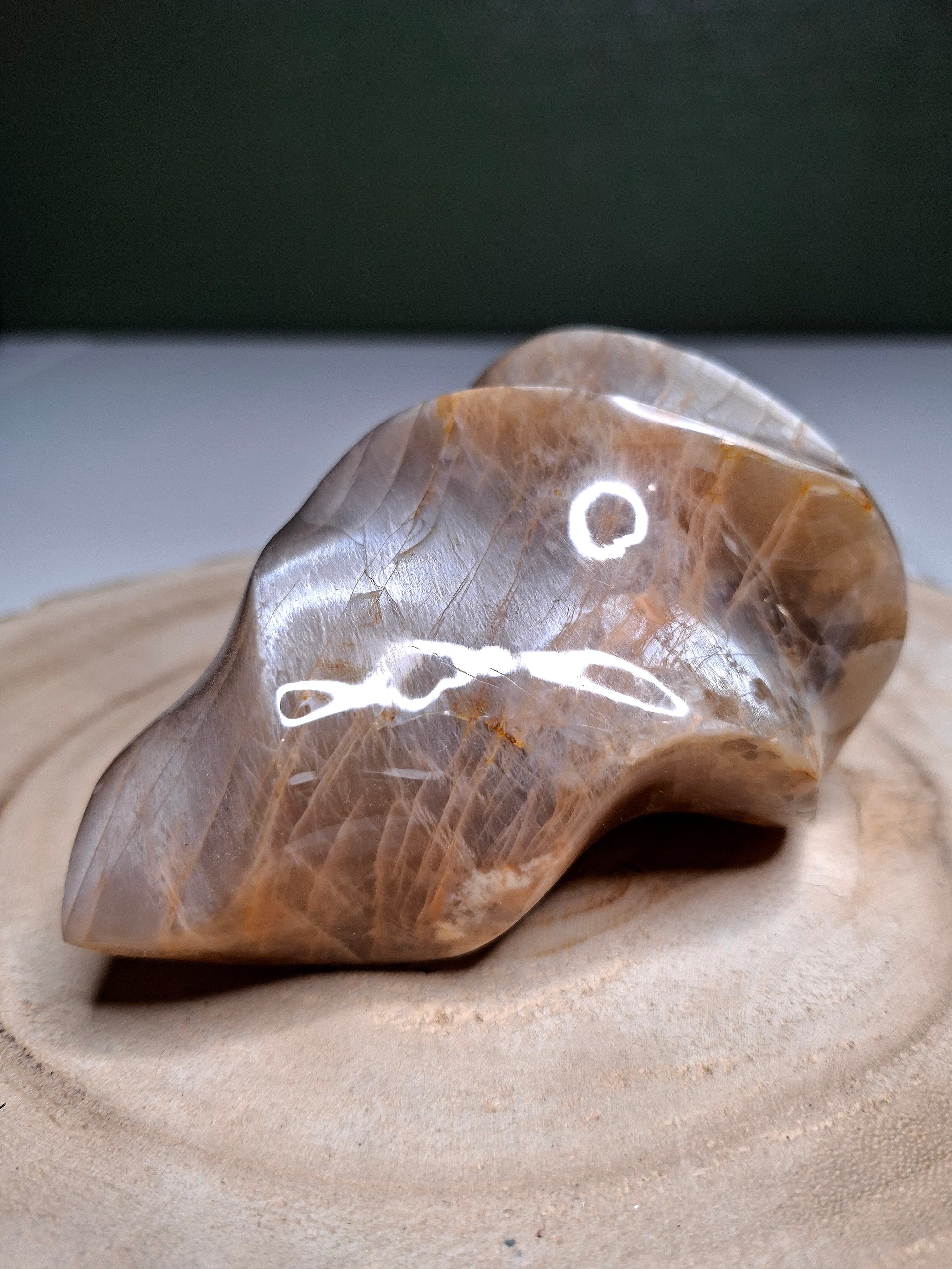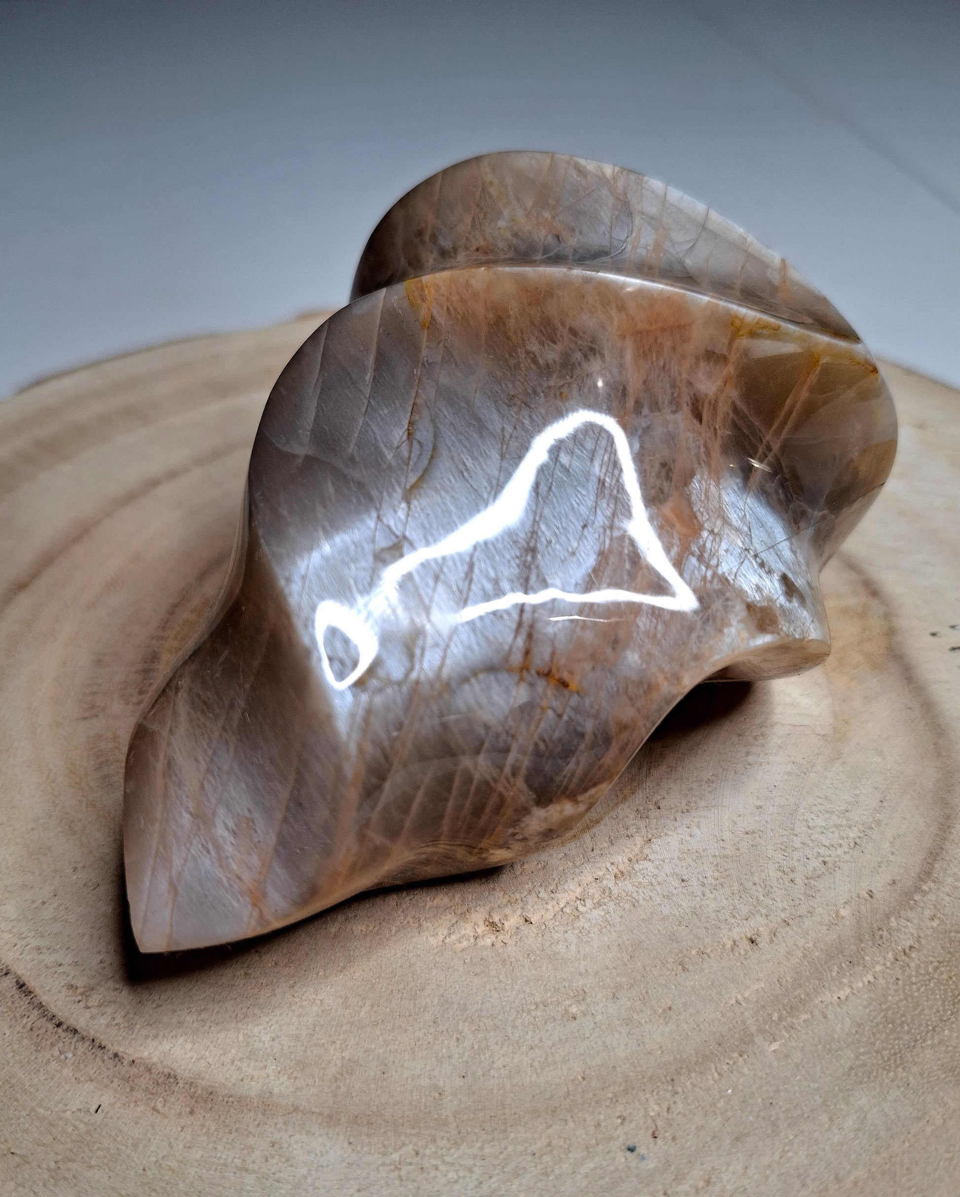 Pierre de lune pêche à reflets gris