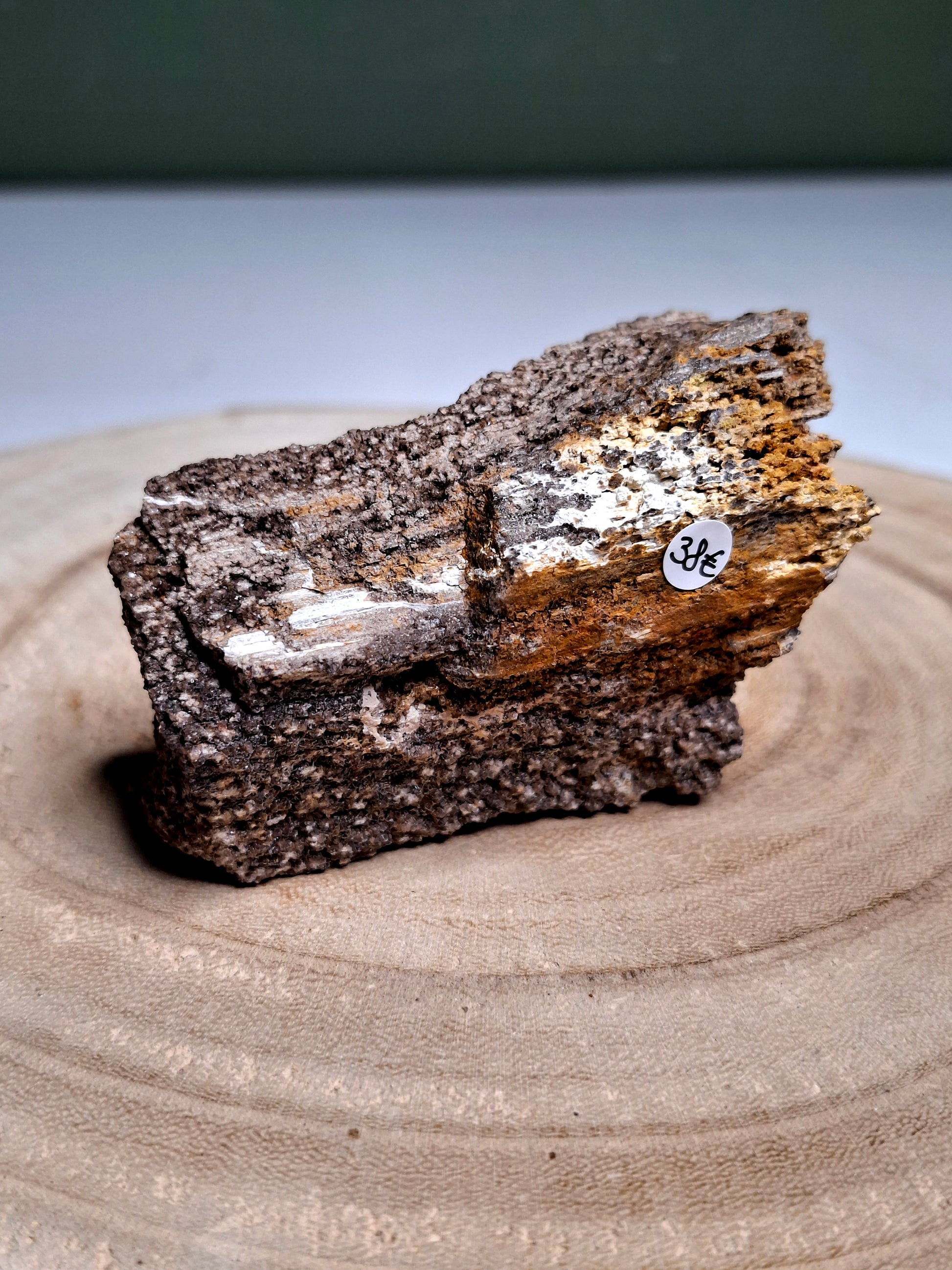 Forme brute en bois fossilisé avec cristallisation scintillante