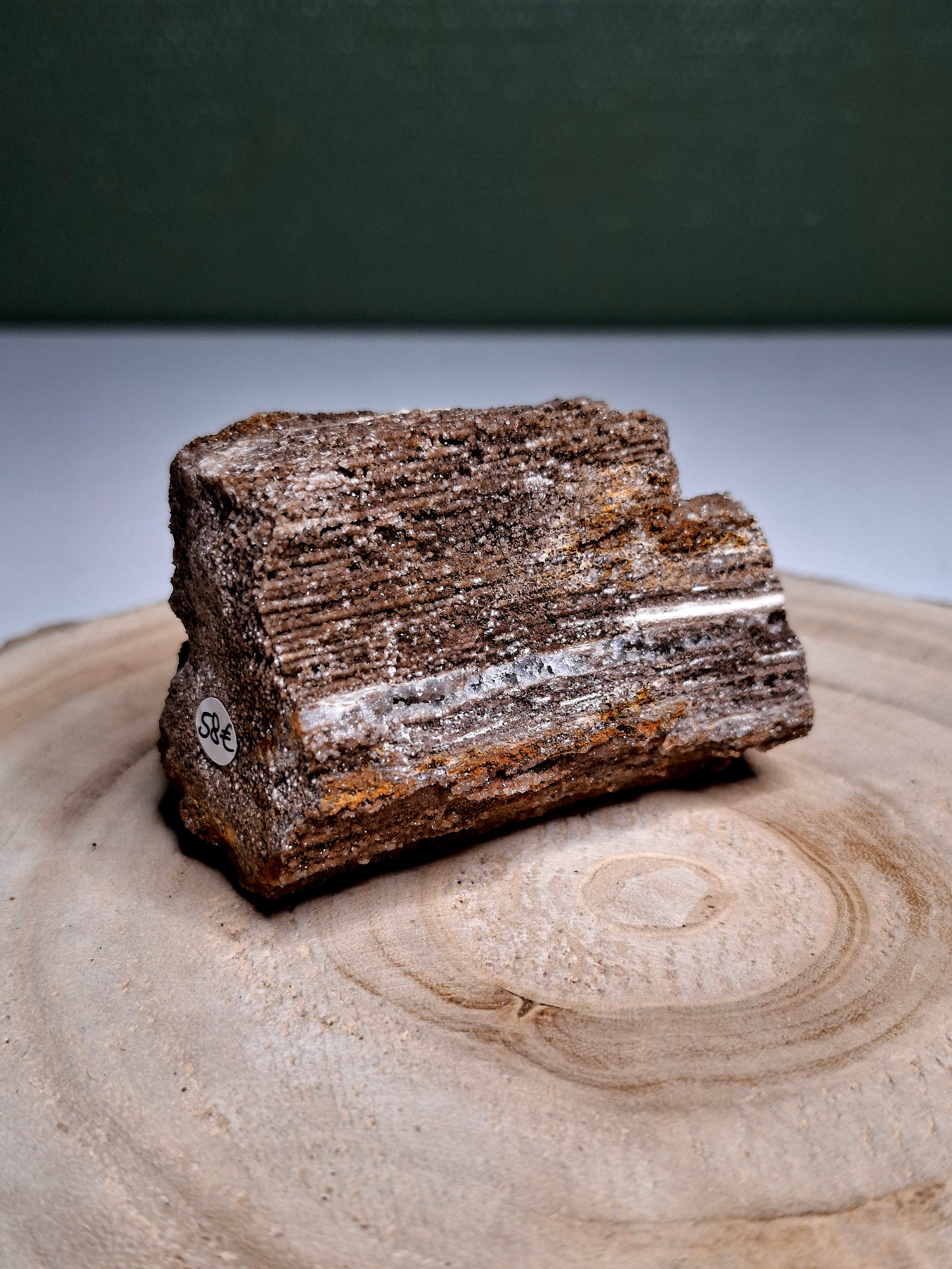 Forme brute en bois fossilisé avec cristallisation scintillante